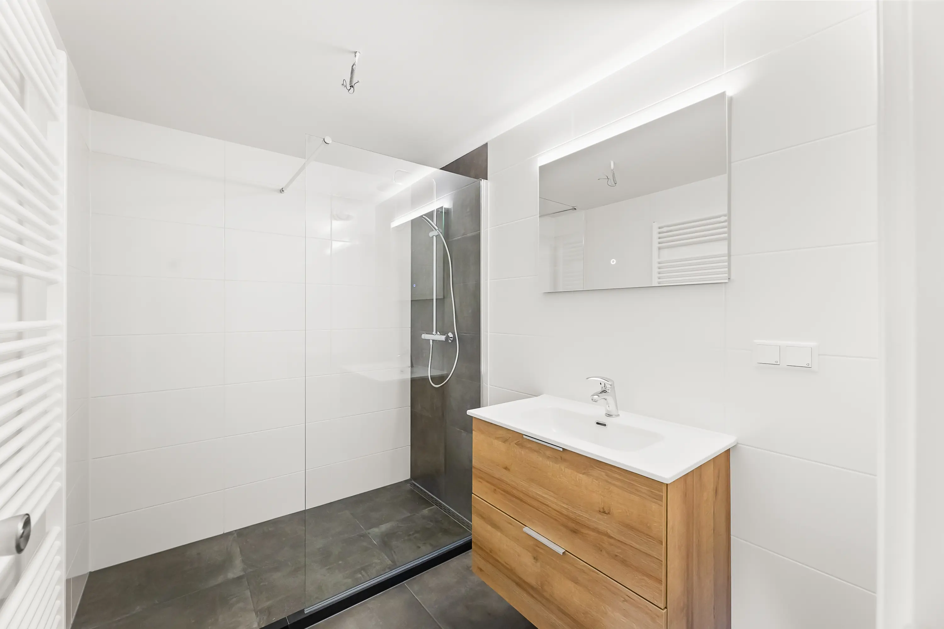 Via de trap bereikt u de onder gelegen slaapverdieping. Er is een zeer royale ouderslaapkamer met een eigen balkonnetje en een praktische inloopkast. Daarnaast nog één extra slaapkamer. De badkamer is volledig vernieuwd en voorzien van een inloopdouche en wastafelmeubel. Separaat tweede en volledig vernieuwd toilet. Verder nog een praktische kast met aansluiting voor het witgoed.