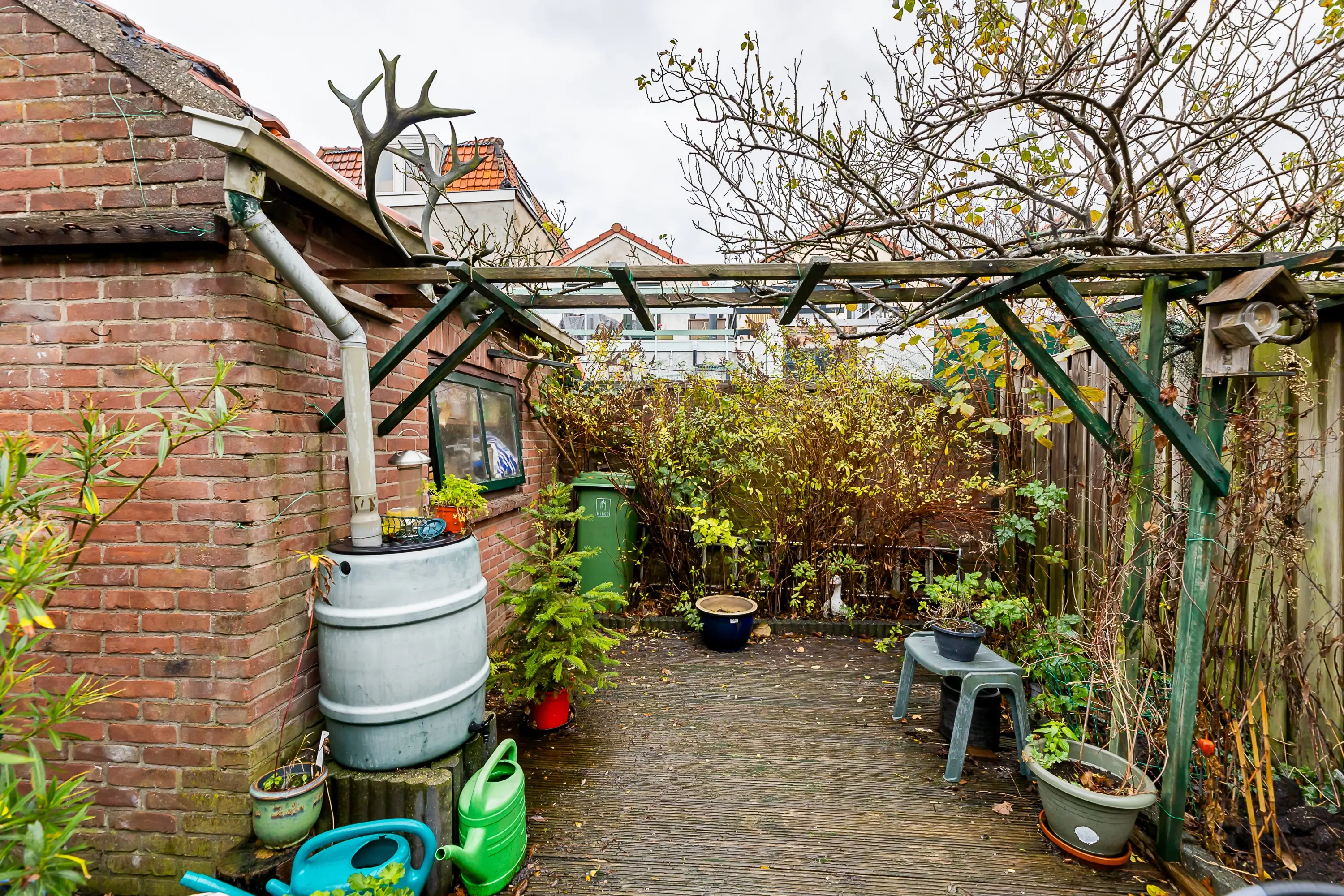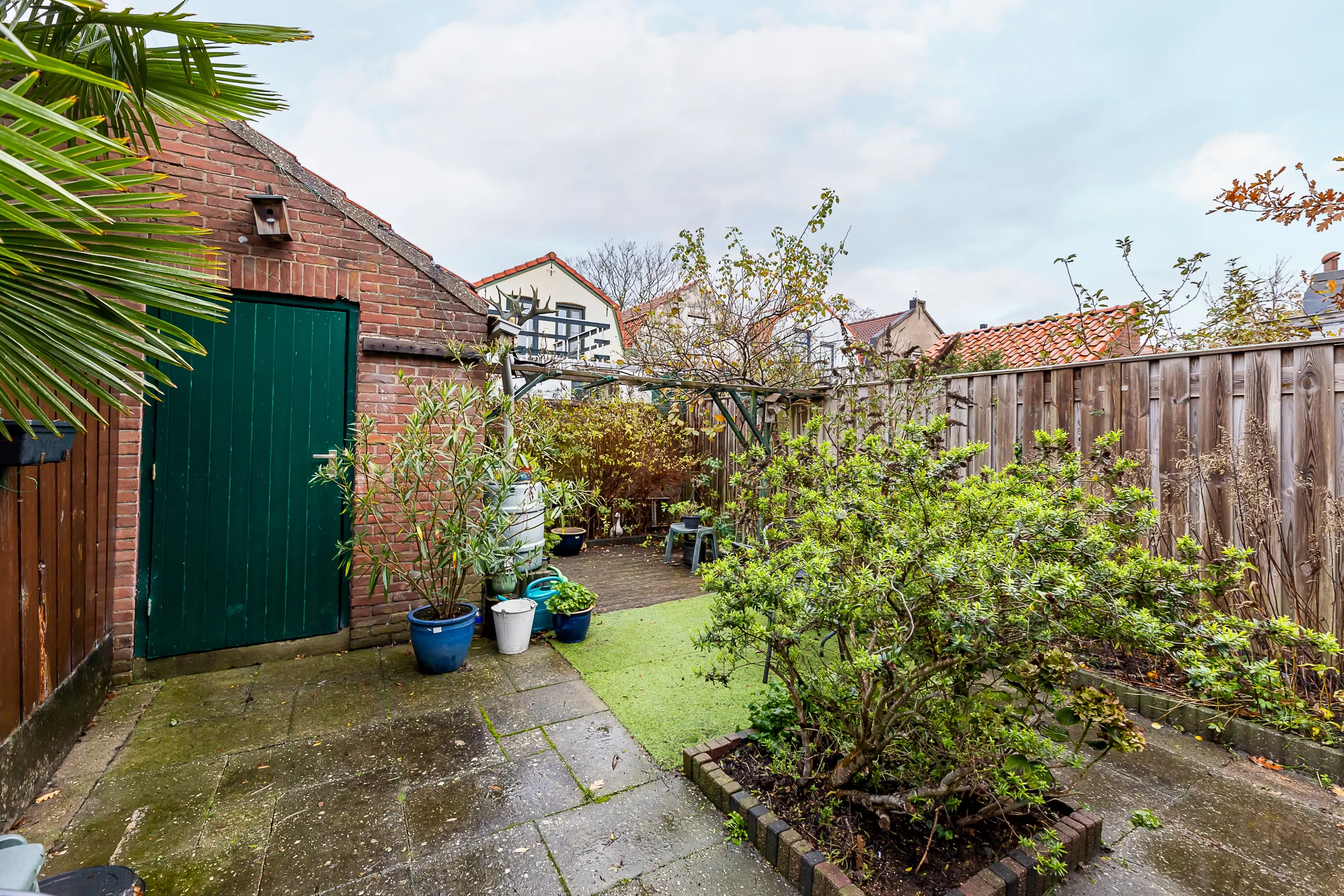 De stadstuin gelegen op het noordwesten is deels betegeld en voorzien van een berging en borders met vaste planten.