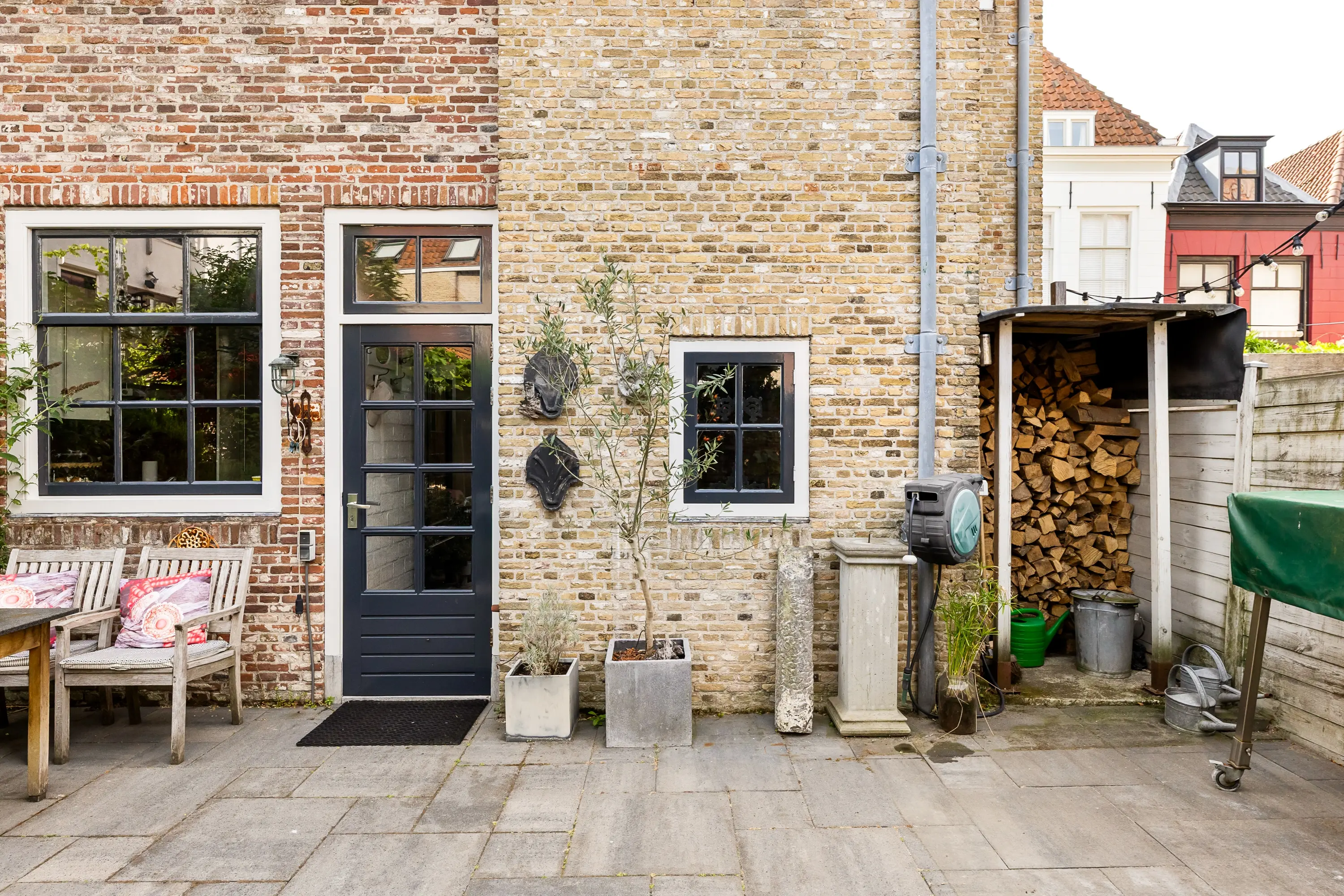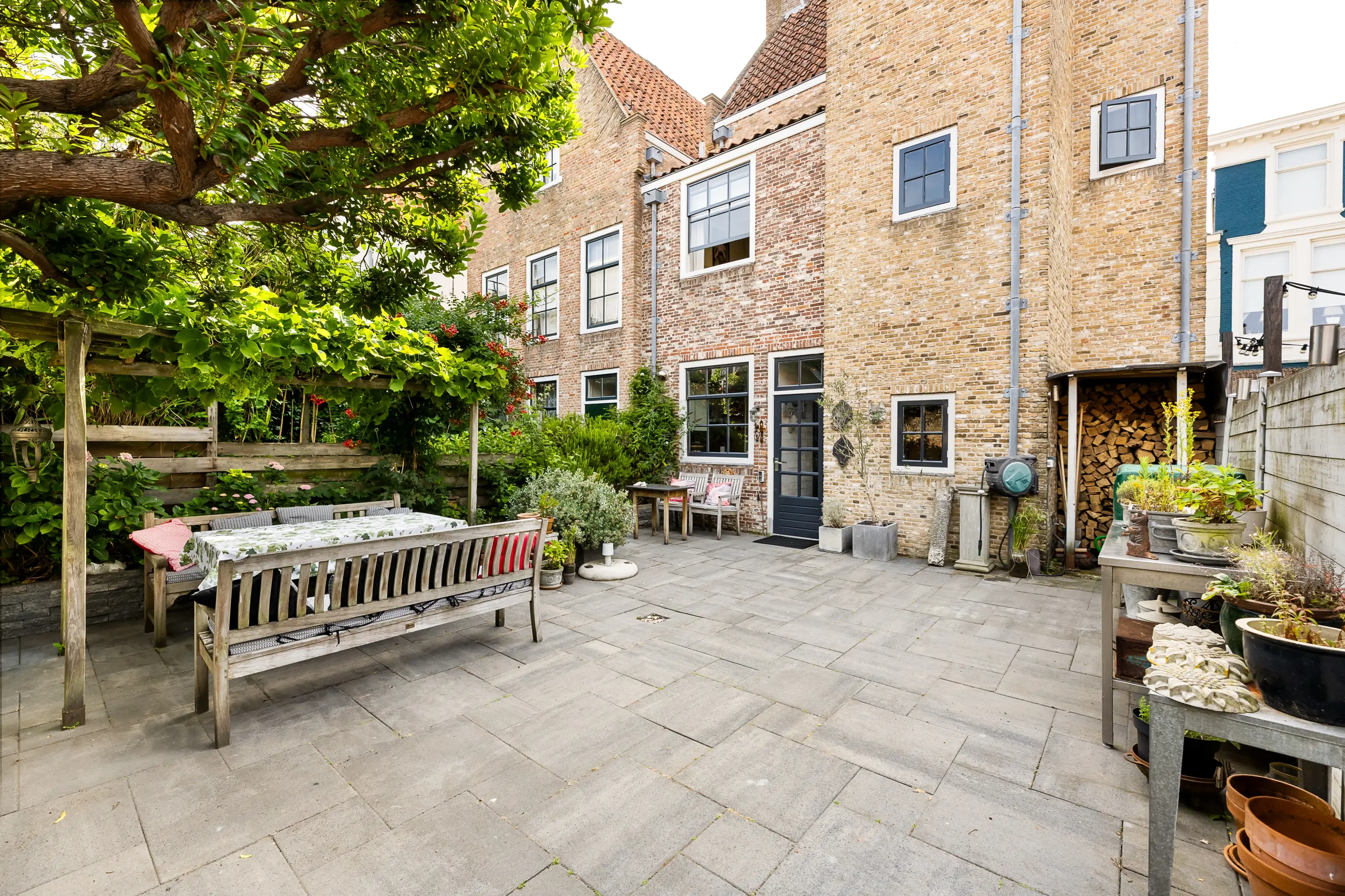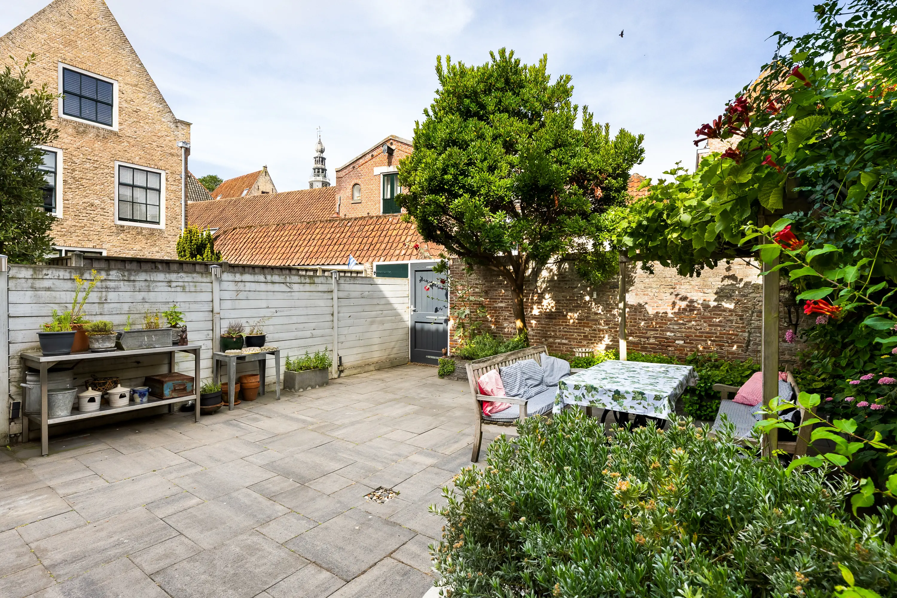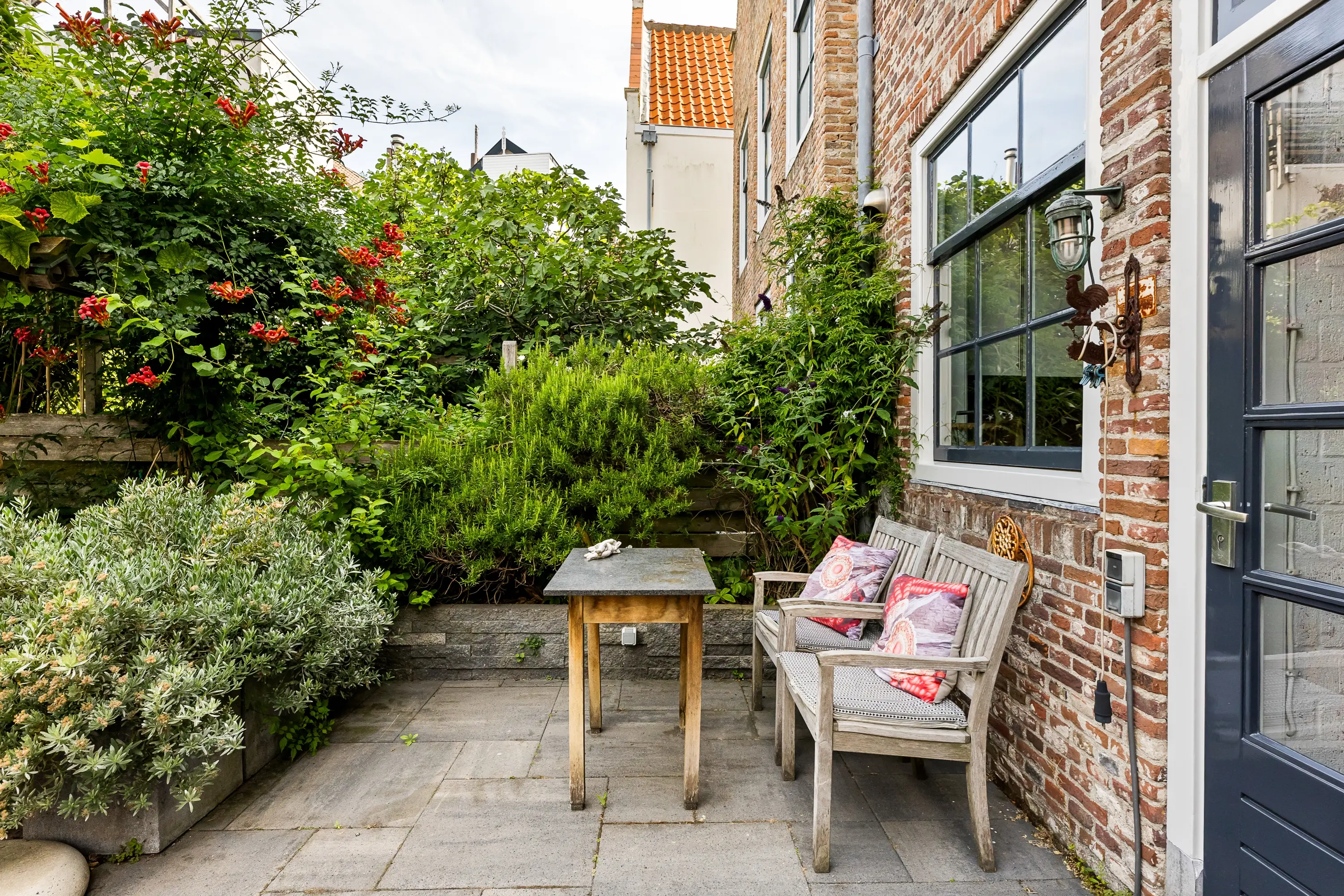 De zonnige achtertuin ligt op het westen. Er is een vrije uitgang naar de Weteringstraat waar de garage zich bevindt. Deze is voorzien van elektra.