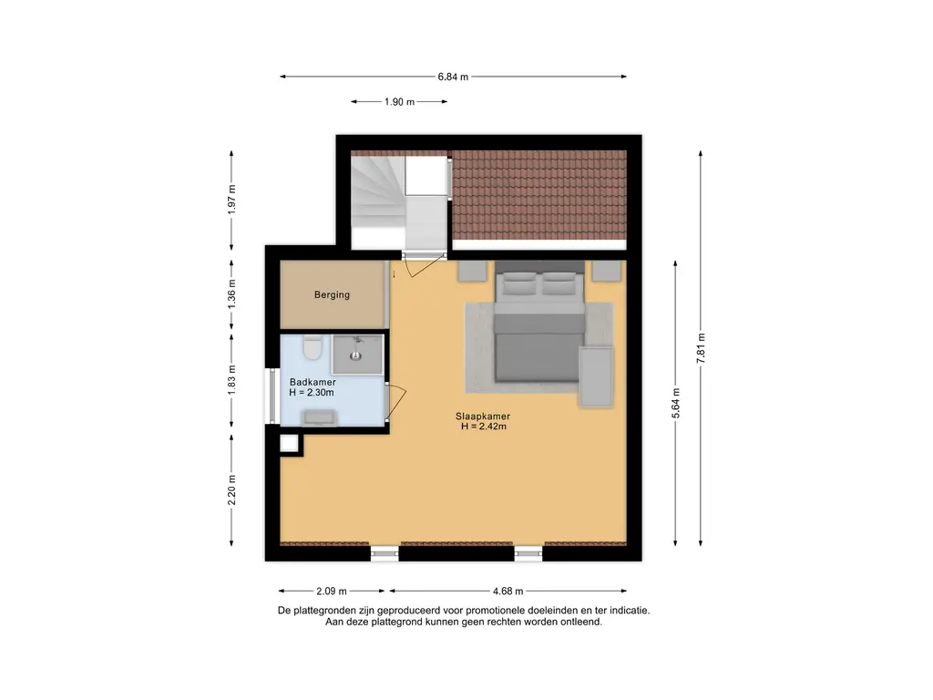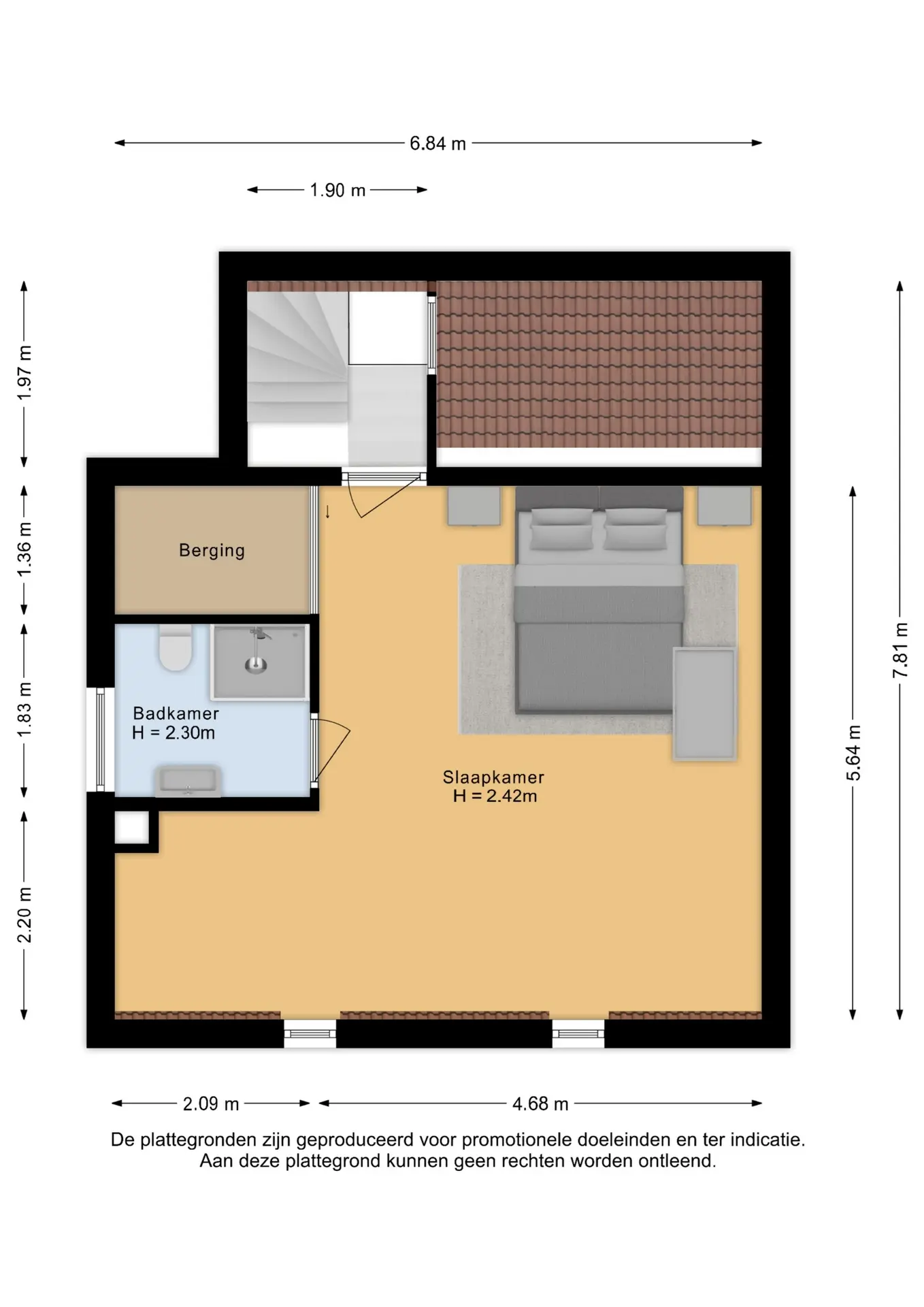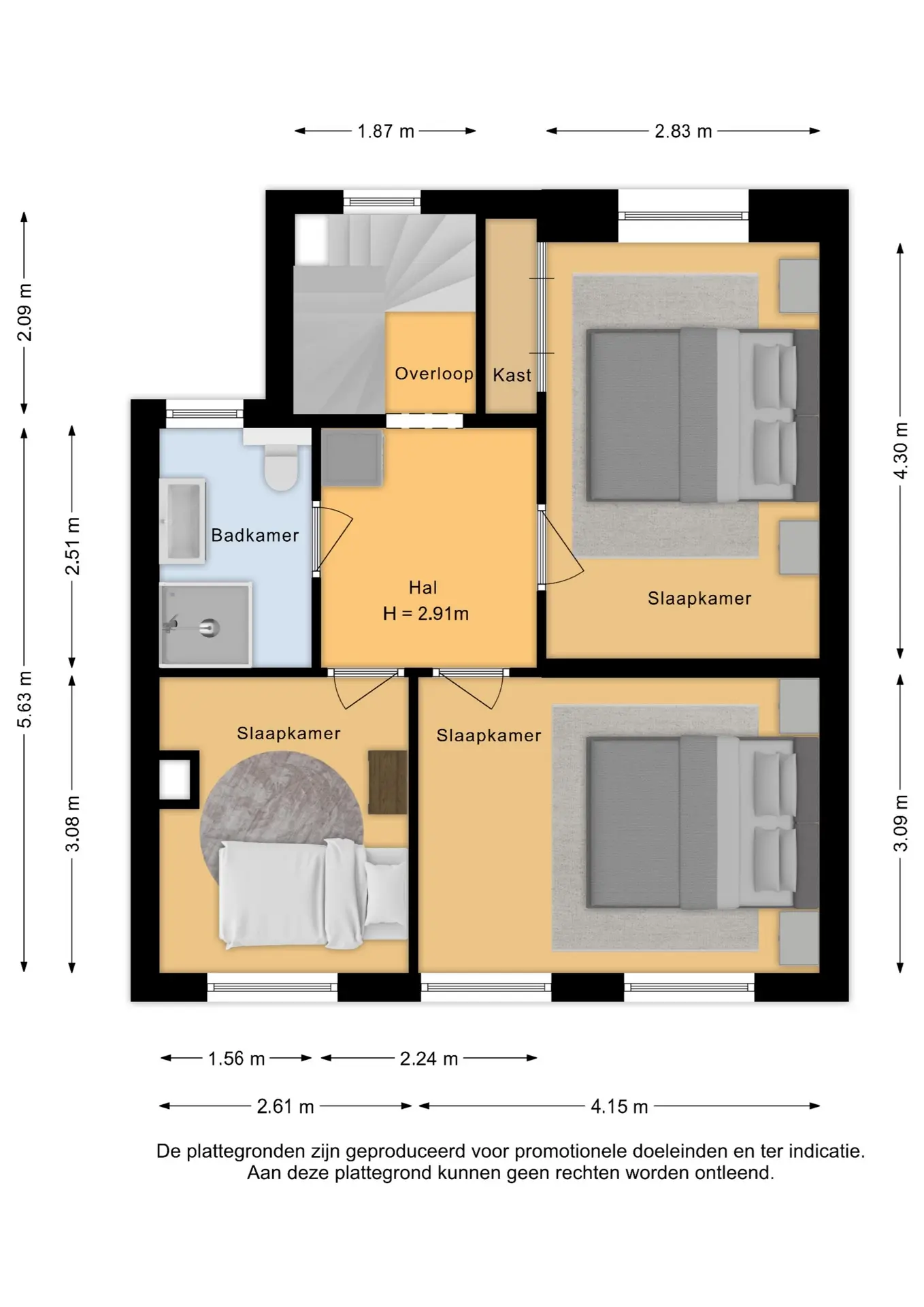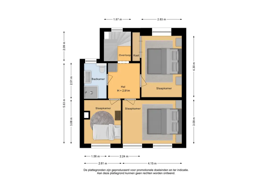 De derde slaapkamer bevindt zich aan de achterzijde.