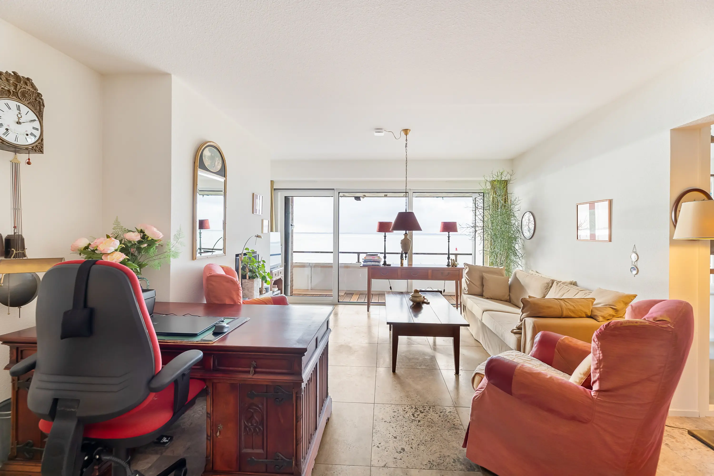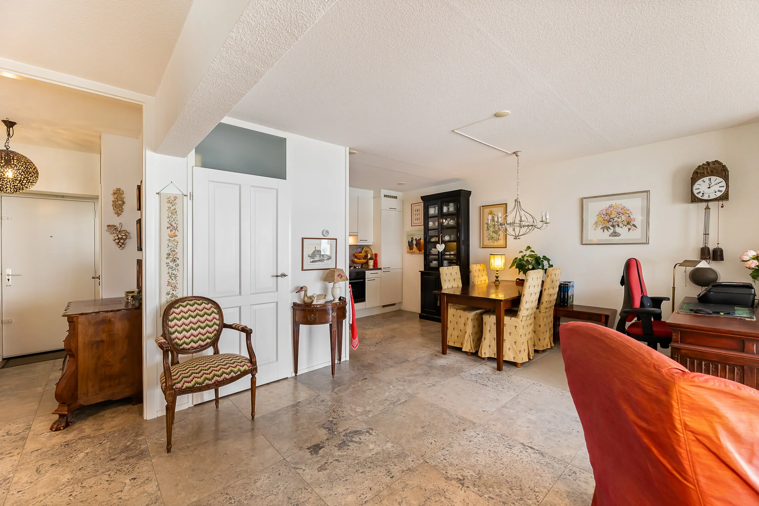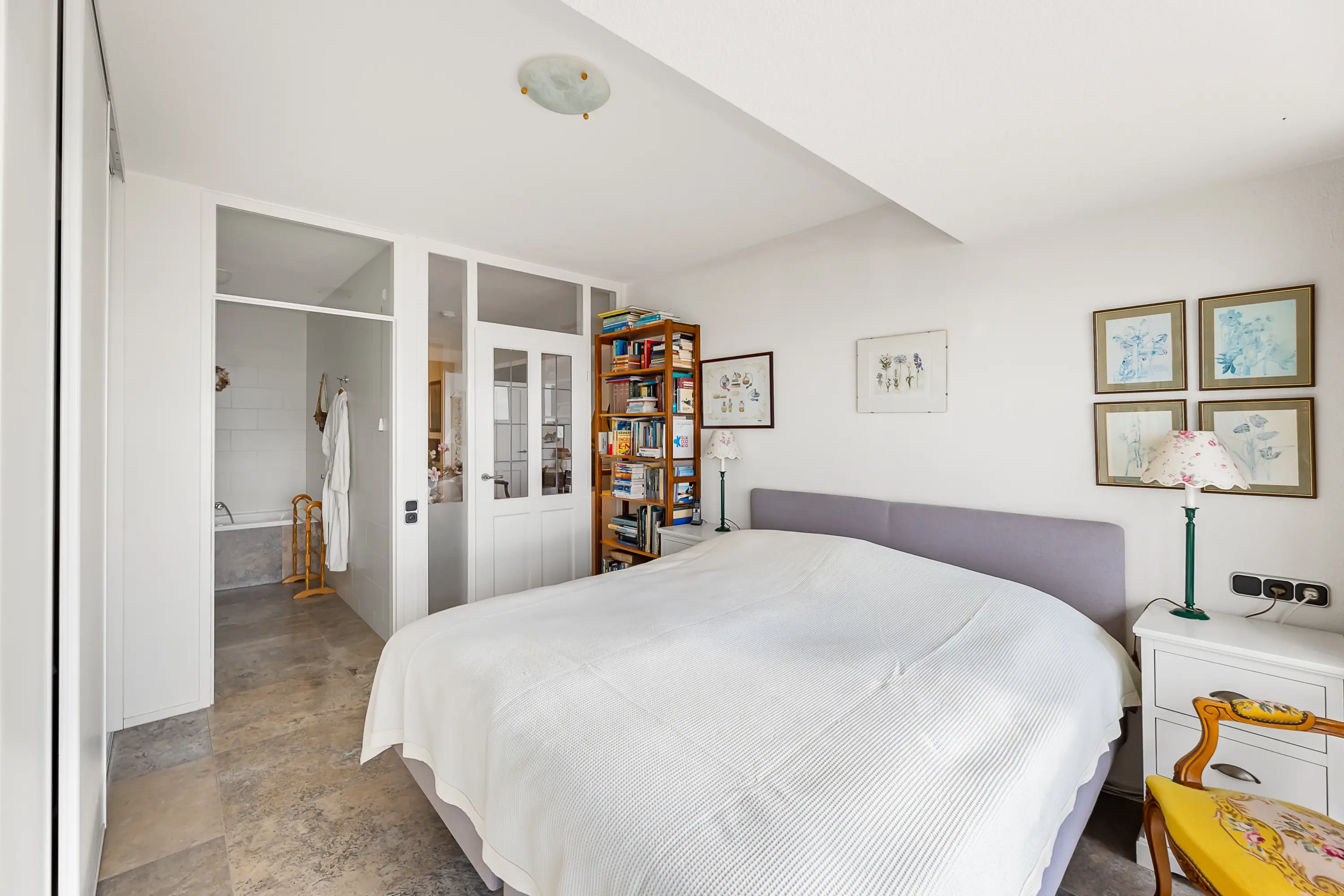 Het volledige appartement is voorzien van een natuurstenen vloer met vloerverwarming.