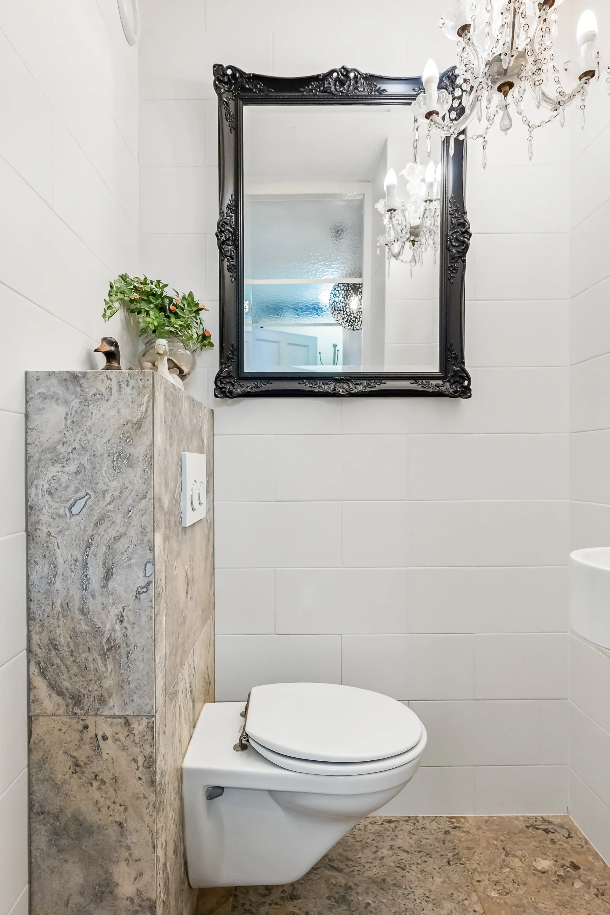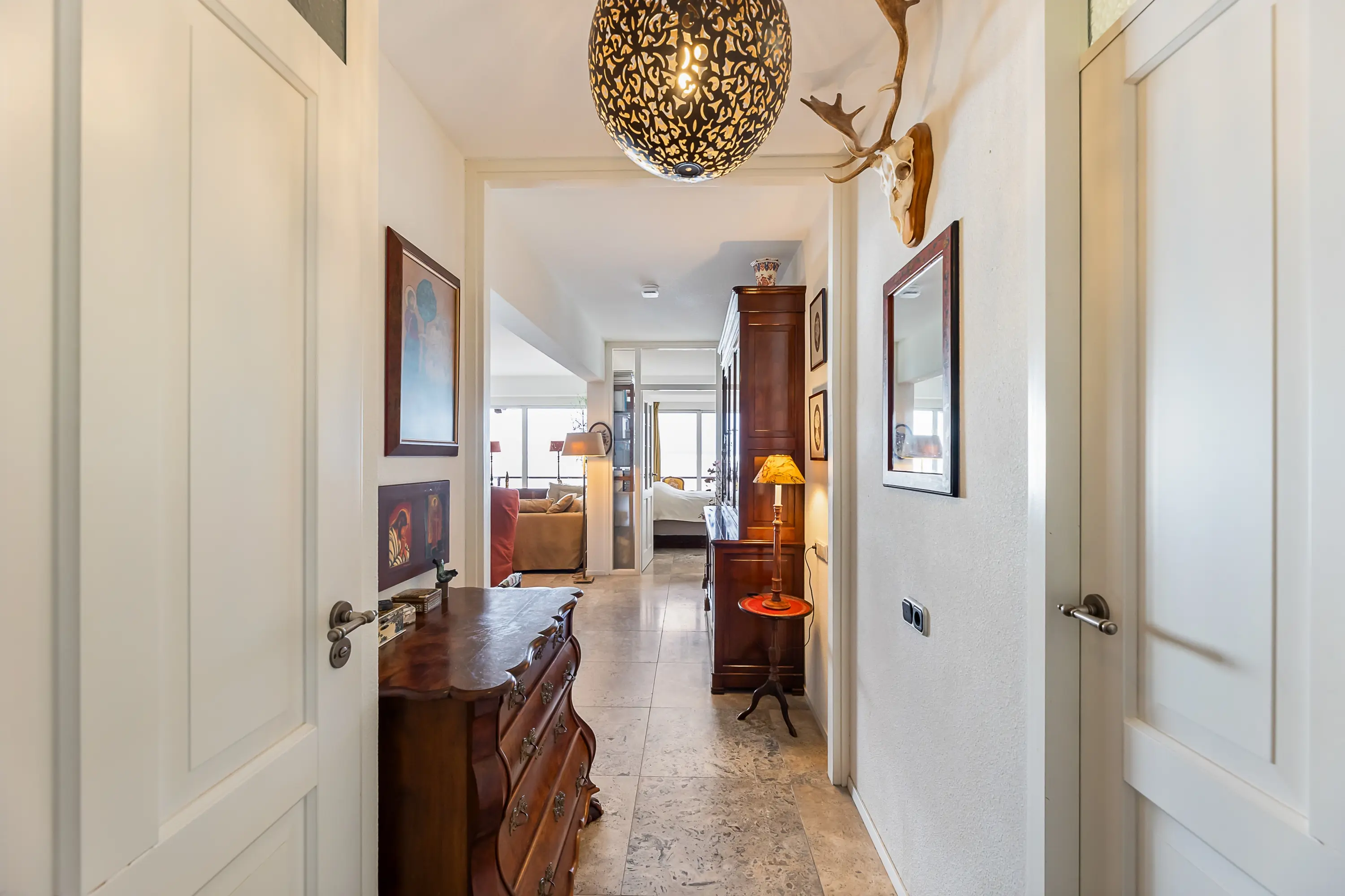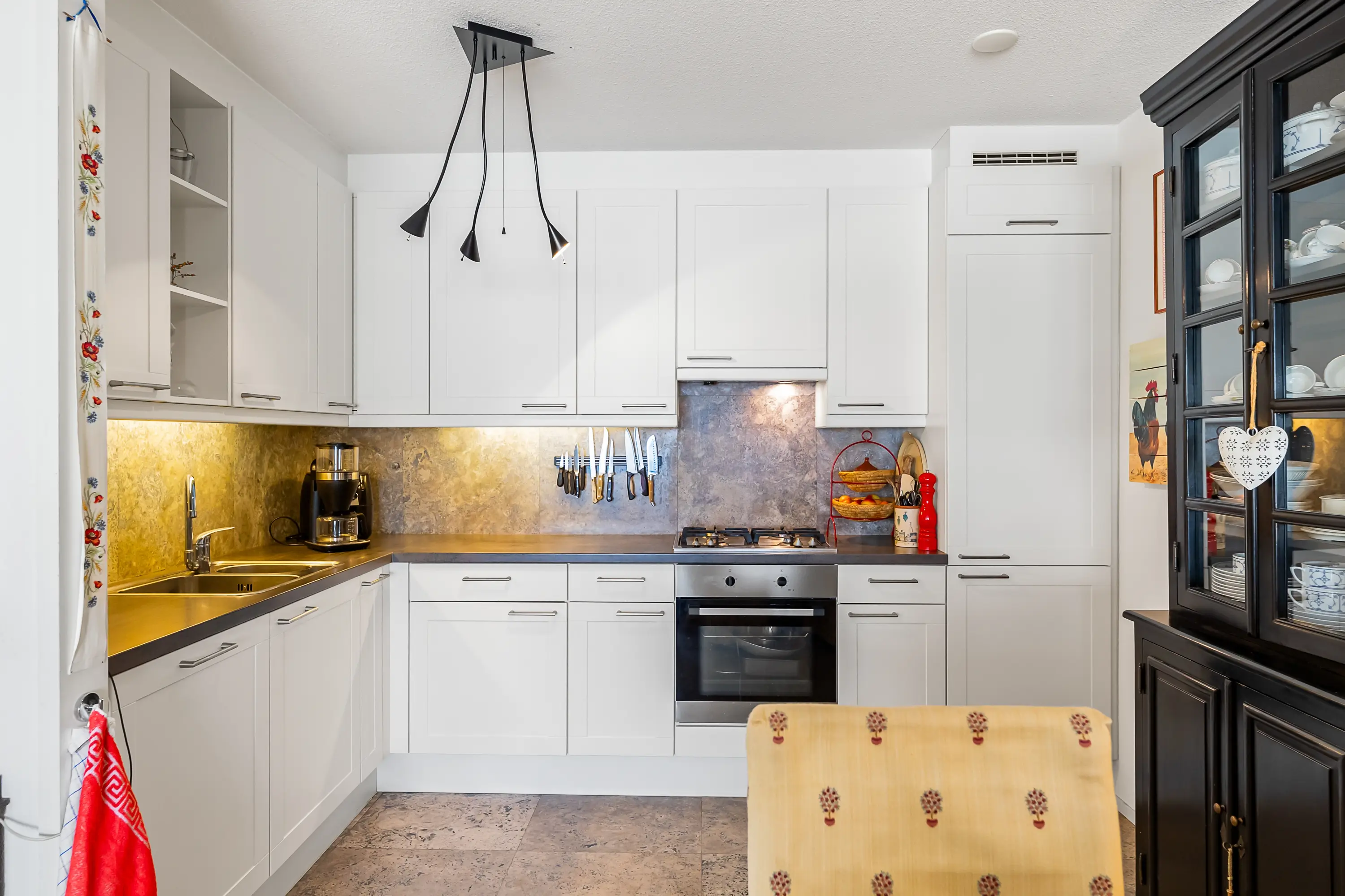 Het volledige appartement is voorzien van een natuurstenen vloer met vloerverwarming.