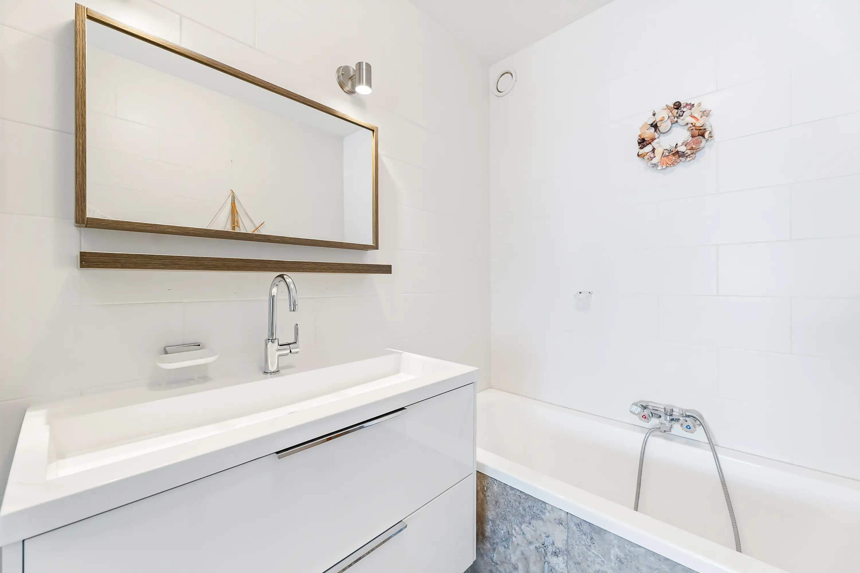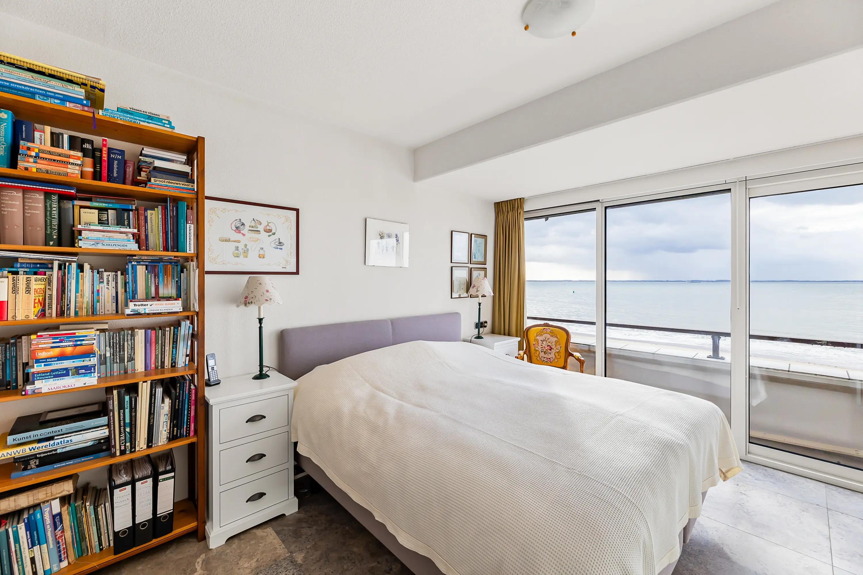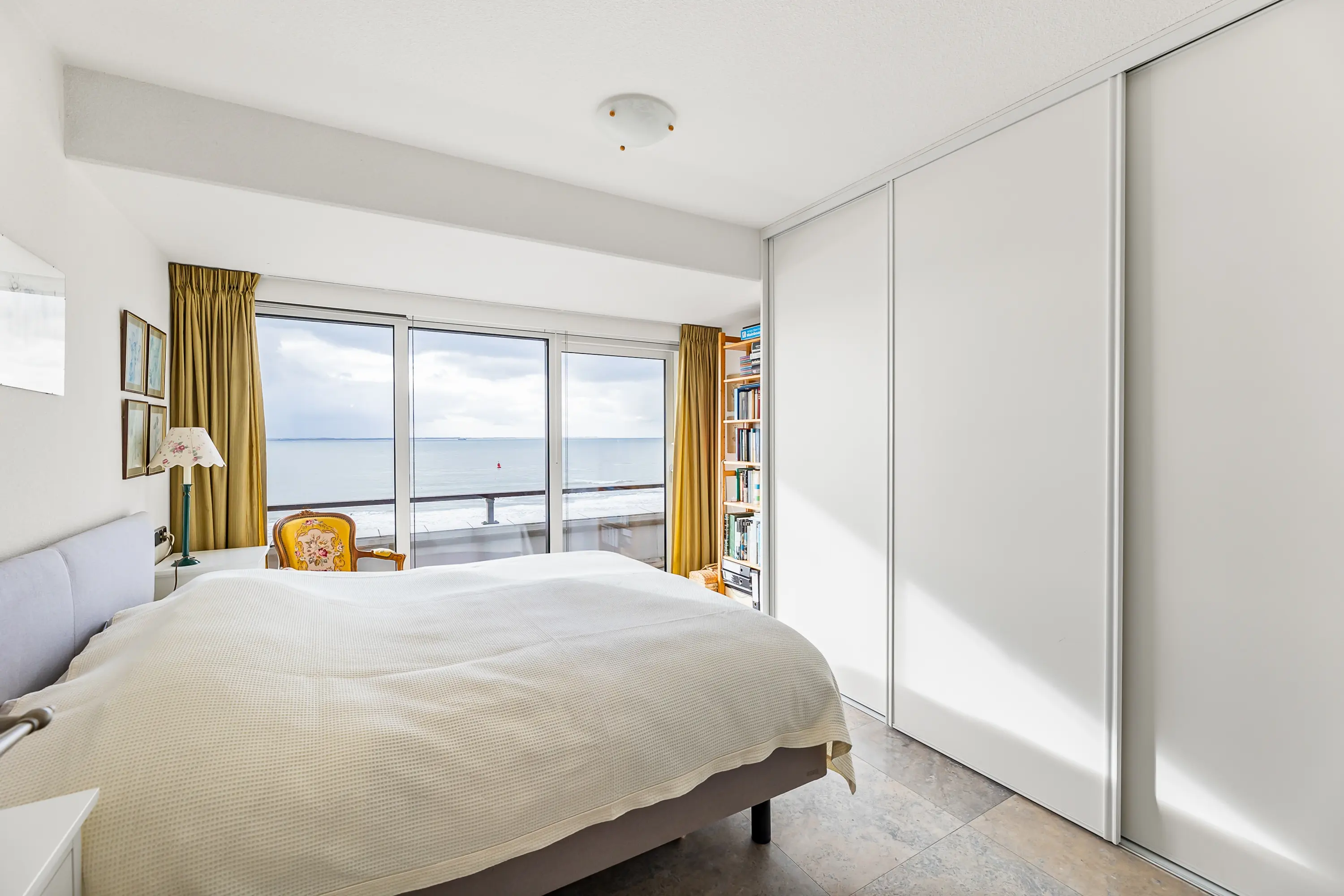 De ligging van de slaapkamer is ook aan de voorzijde en dat wil zeggen wakker worden met zeezicht. Vanuit de slaapkamer heeft u ook toegang tot het balkon via een nieuw geplaatste schuifpui aan de voorzijde. De badkamer en suite is netjes afgewerkt met een inloopdouche, ligbad en wastafelmeubel.