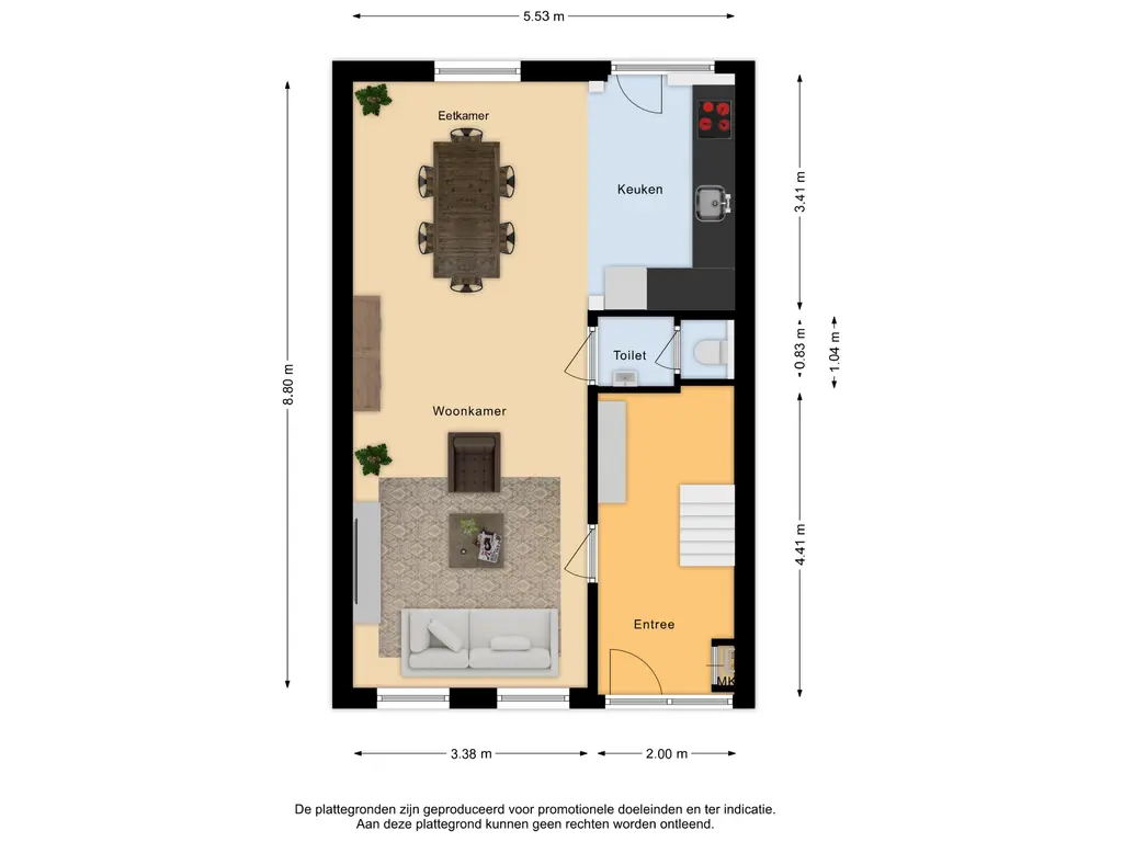 Entree, hal met de trapopgang en de vernieuwde uitgebreide meterkast. De woonkamer is sfeervol met hoge plafdons en een houten vloer. De open keuken is strak uitgevoerd in het zwart en voorzien van diverse inbouwapparaten. Portaal met toegang tot het toilet.
