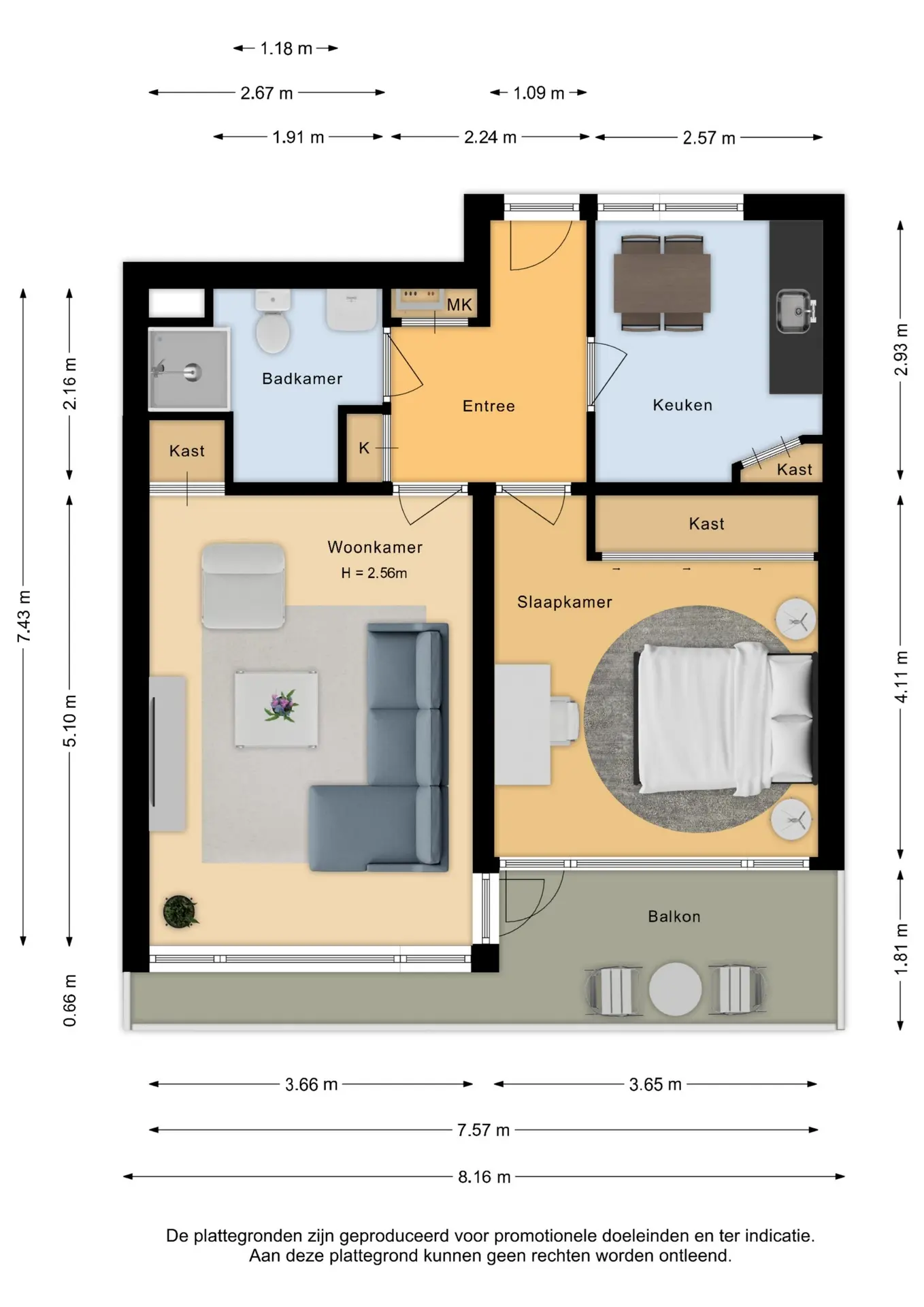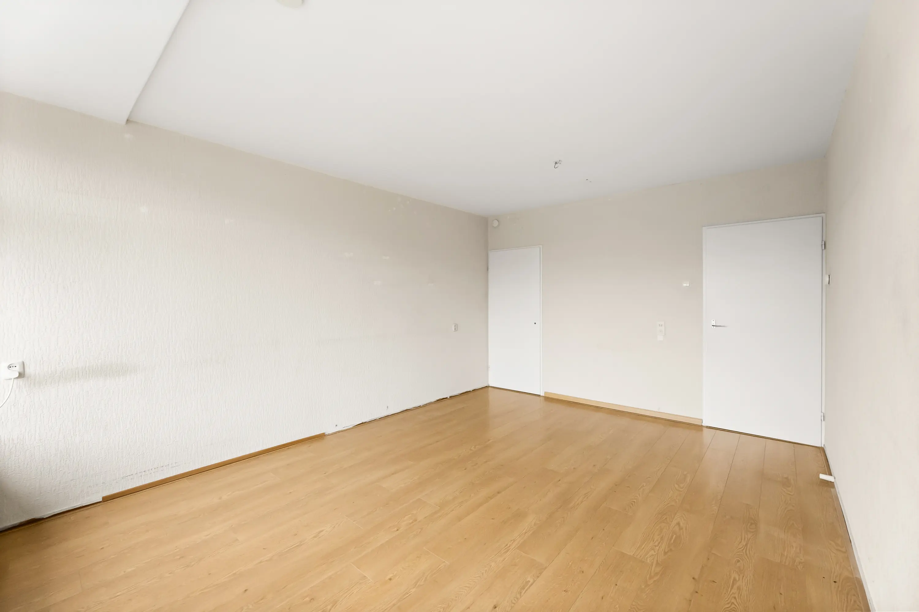 Entree met meterkast en de hal met toegang tot alle vertrekken. De woonkamer heeft een leuk uitzicht op het Stadhuisplein en toegang tot het balkon. Er is 1 slaapkamer, ook met toegang tot het balkon. De badkamer is voorzien van een douche, wastafel en het toilet. Eenvoudige gesloten keuken met opstelling van de c.v.-combiketel.